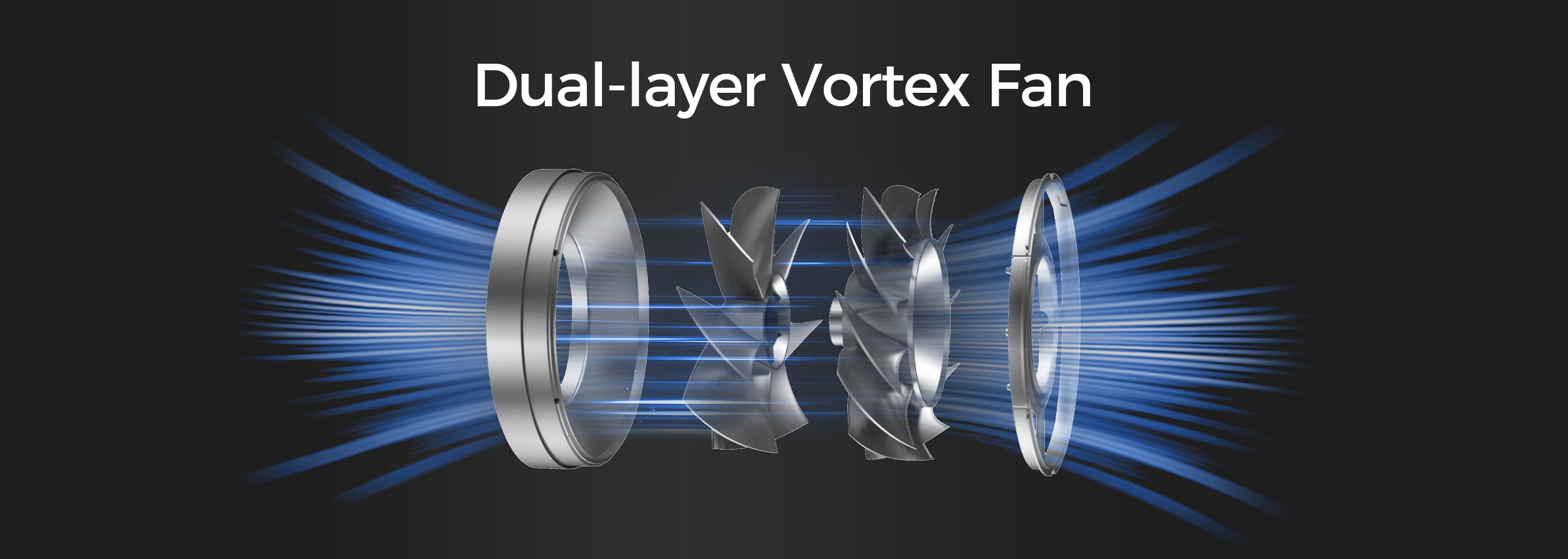 Powered by a dual-layer vortex fan, AUPU 2-in-1 boosts airflow to circulate clean air more efficiently.